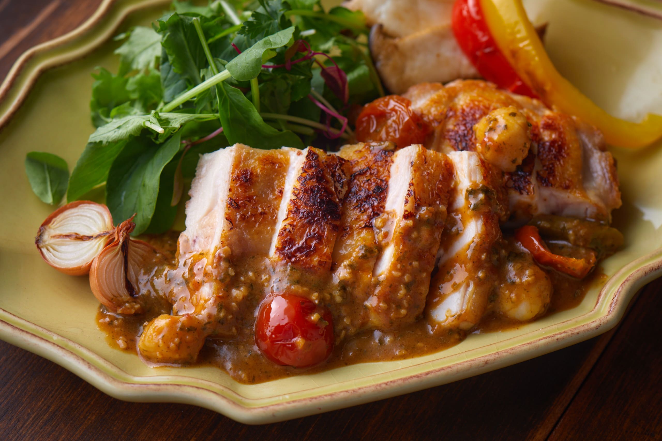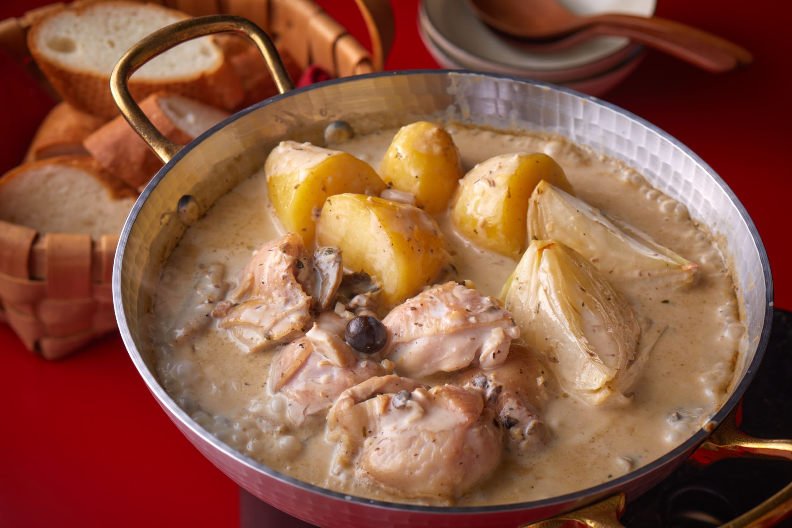シュクメルリは、にんにくが効いたソースで鶏肉を煮込むジョージアの伝統的な郷土料理。