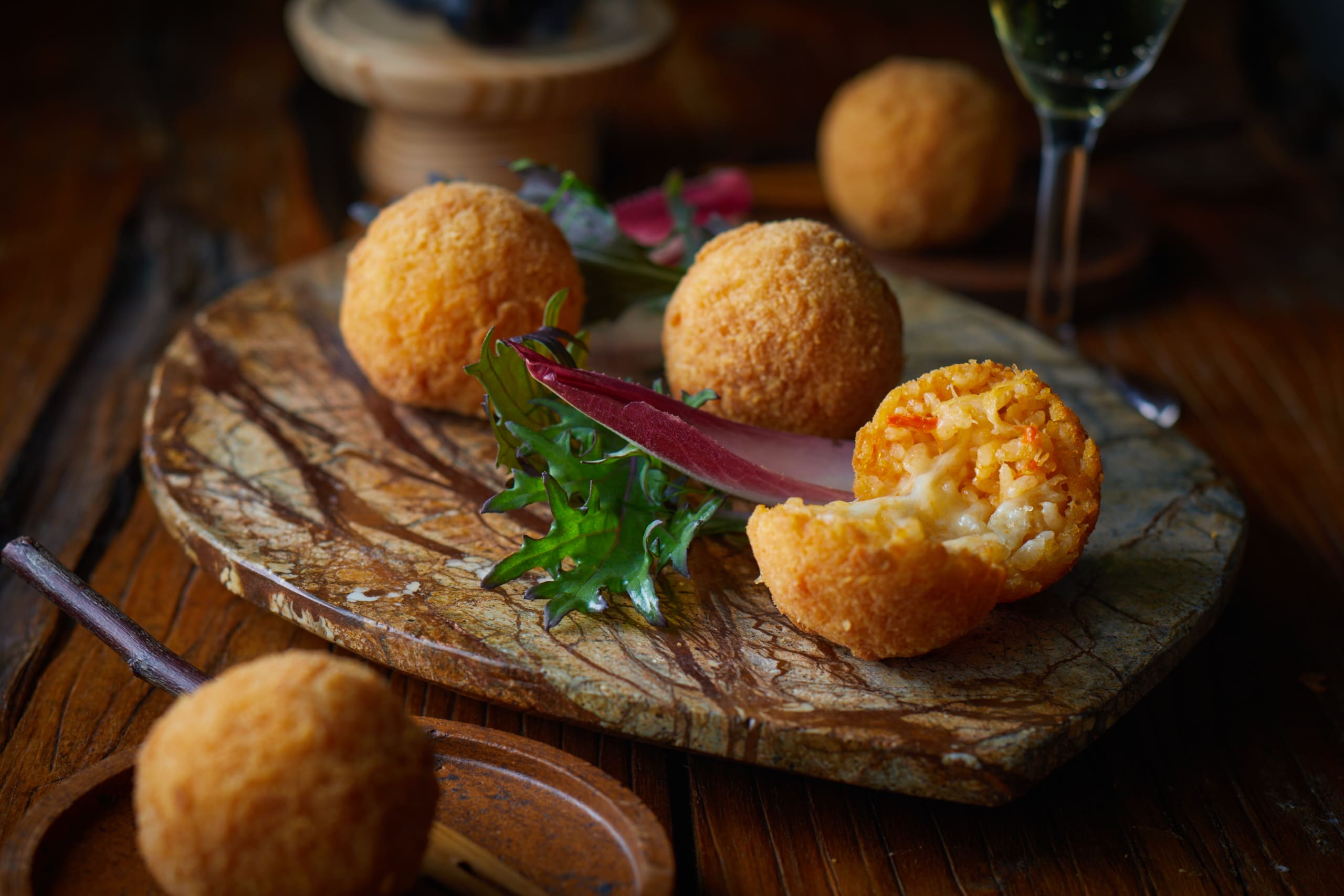 カリッと香ばしく、中からとろけるチーズと蟹の旨味があふれる「アランチーニ」は、食卓を華やかにしてくれる一品です。
