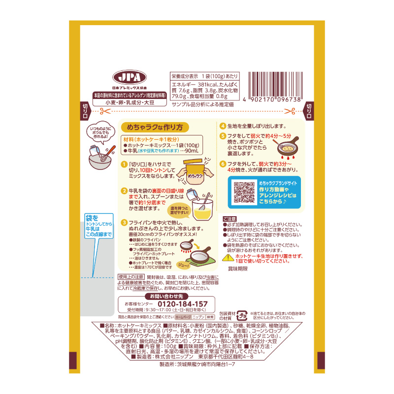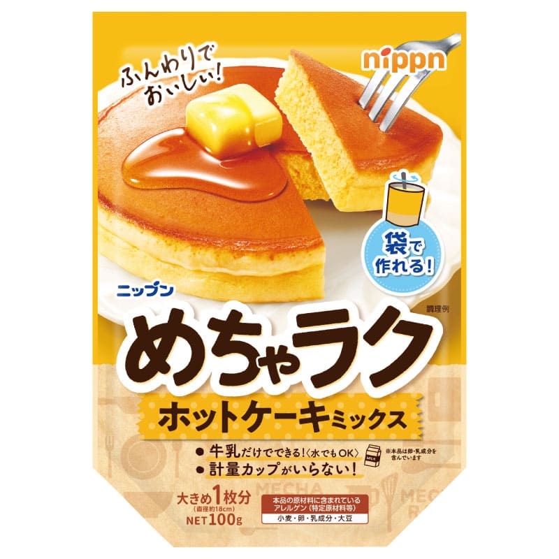 より美味しく楽しいお菓子作りを応援する、ニップンのめちゃラクシリーズのホットケーキミックスです。