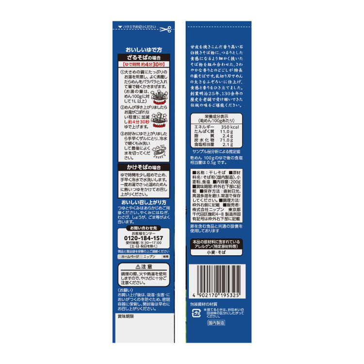 | 原材料名 | そば粉(国内製造)、小麦粉、食塩 |