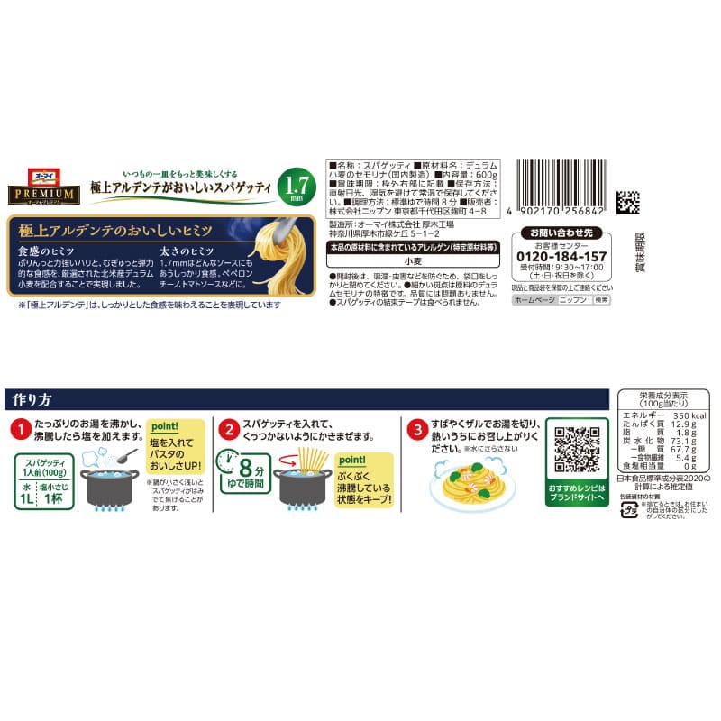 オーマイプレミアム 極上アルデンテがおいしいスパゲッティ1.7㎜