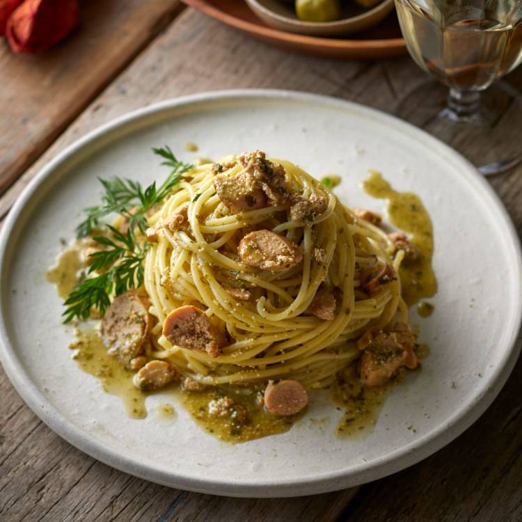 調理方法は茹でた生パスタに、湯せんで温めたパスタソースをあえるだけ!