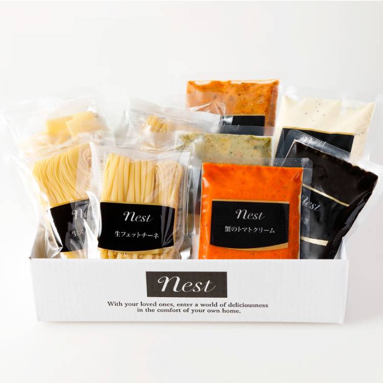 常に新しい美味しさを追求するブランド「nest(ネスト)」から、海の幸をふんだんに使用した5品を詰め合わせたセット。