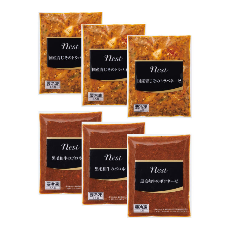 【期間限定特別価格】nestパスタソース6食セット(黒毛和牛のボロネーゼ&国産青じそのトラパネーゼ)